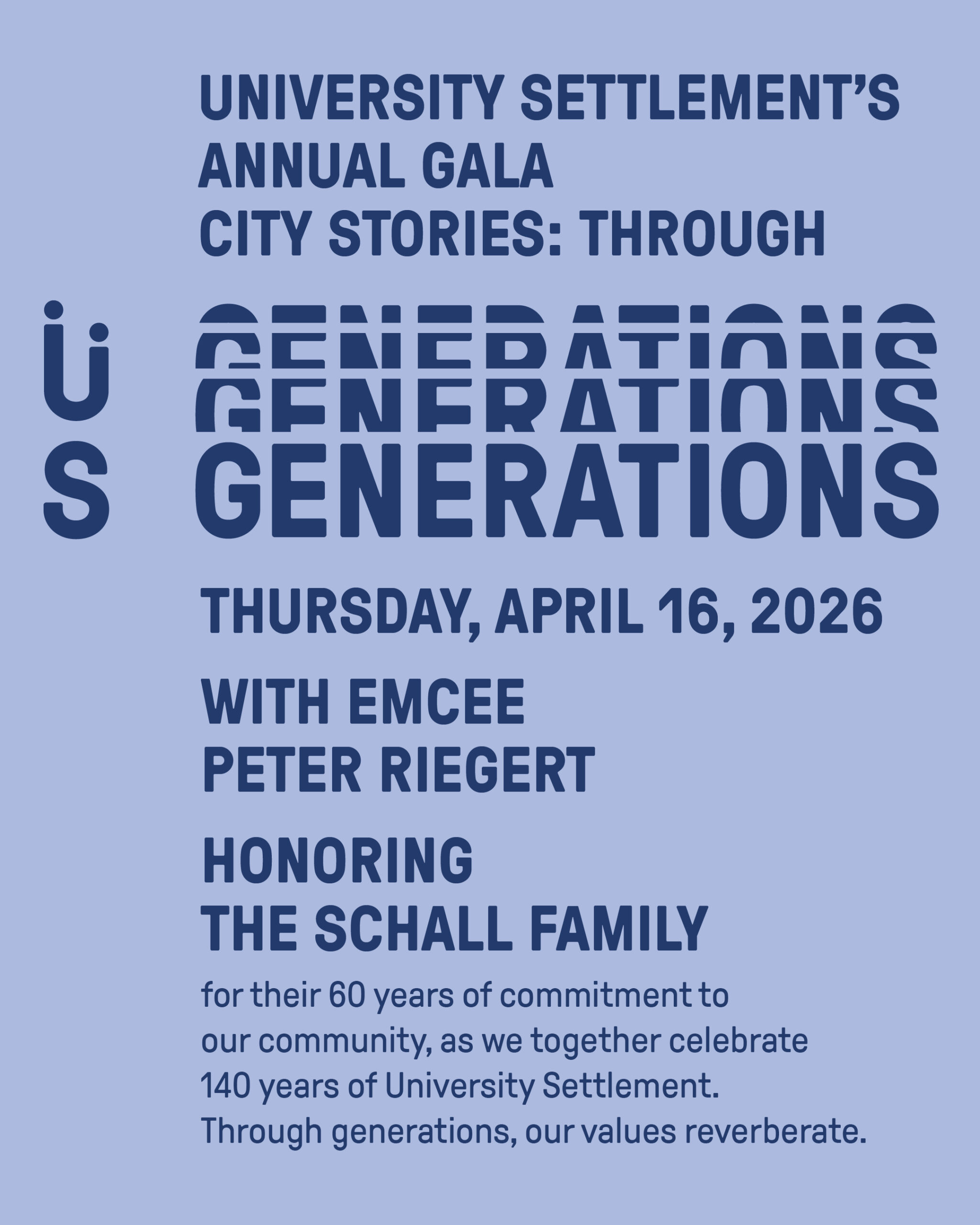We strive to host inclusive, accessible events. If you need an accommodation or have any strict dietary requirements, please reach out to Nancy Faragalla at nfaragalla@universitysettlement.org or call 646-465-5358.